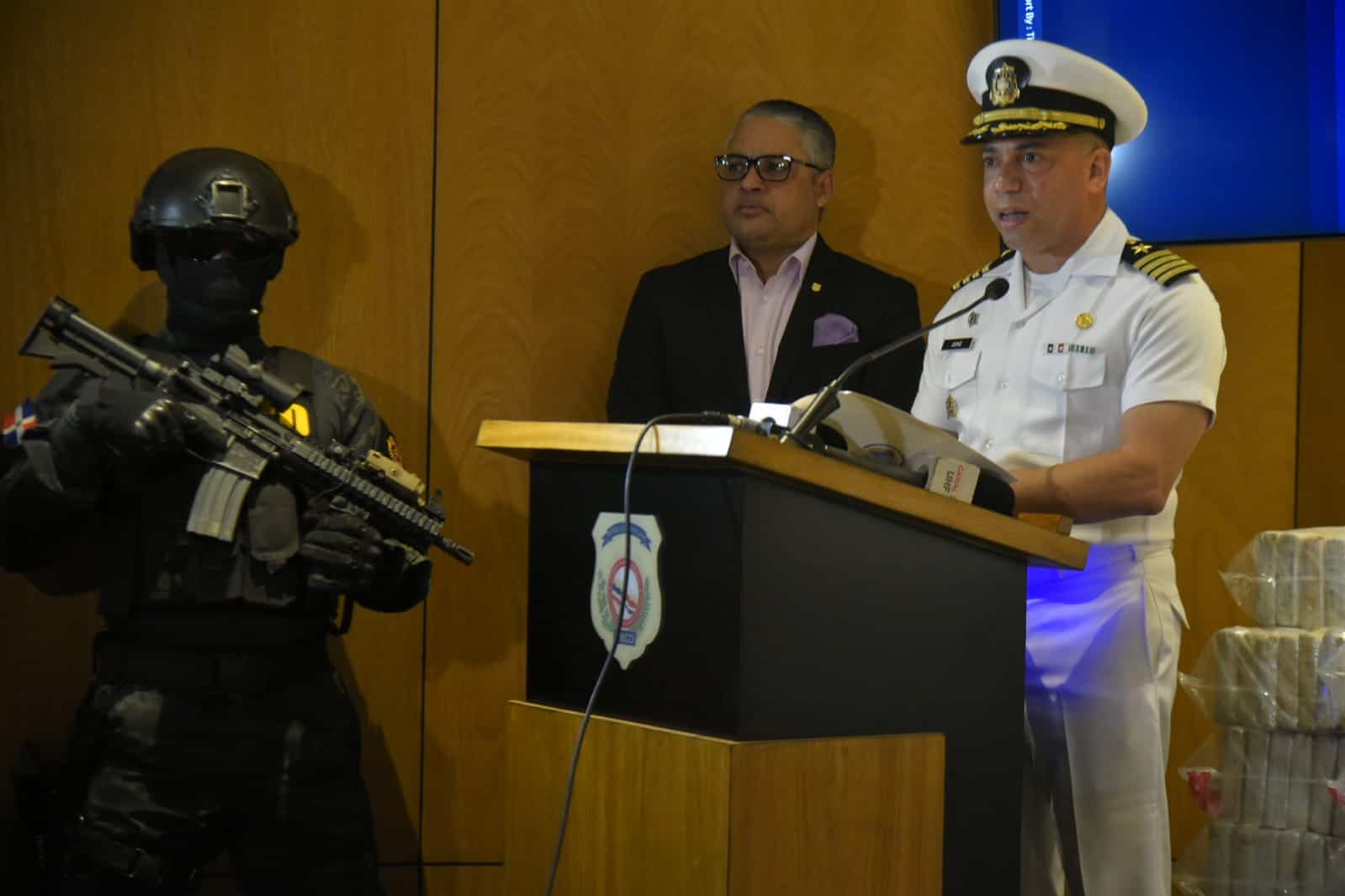 “La Armada reitera su compromiso de trabajo conjunto con la DNCD, en ese sentido, hemos implementado una estrategia de seguridad con varias capas que incrementa el patrullaje marítimo, costero, lanchas interceptoras y guardas costas a gran escala”, sostuvo Vásquez.